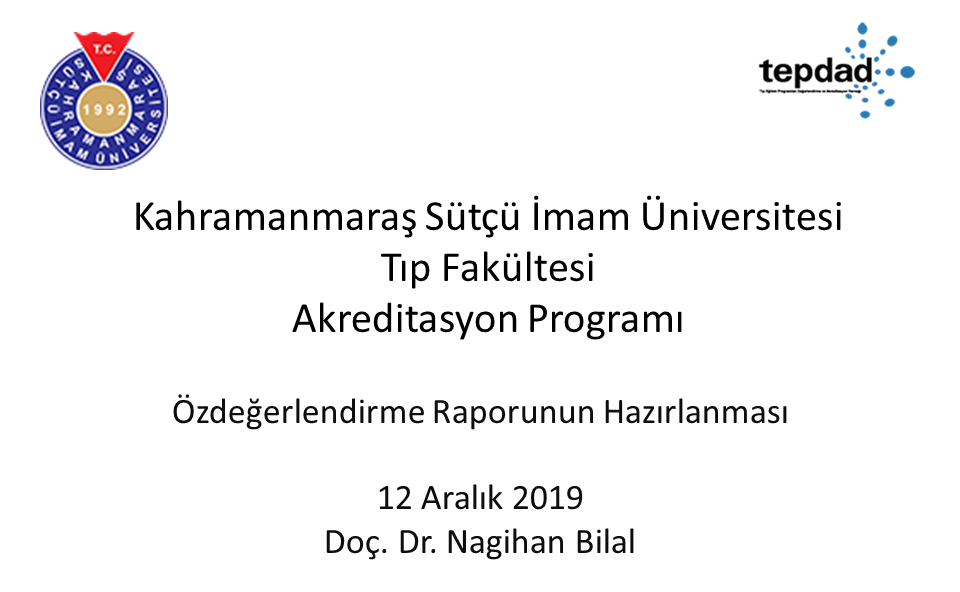 Fakültemizin akreditasyon sürecinde bugüne kadar yapılan ve bundan sonraki süreçte yapılması planlanan iş ve işlemlerle ilgili olarak "Fakülte Öz Değerlendirme ve Kalite Kurulu" ile "Anabilim Dalları Akreditasyon ve Kalite Sorumluları "nın katılımıyla 12 Aralık 2019 Perşembe günü Saat 11 :30'da Hastane Konferans Salonunda Akreditasyon Süreci Değerlendirme toplantısı yapıldı. Yapılan toplantıda, Öz Değerlendirme Koordinatörü Doç. Dr. Nagihan BİLAL Hocamız katılımcılara Öz Değerlendirme Raporunun Hazırlanması konulu bir sunum yaptı.