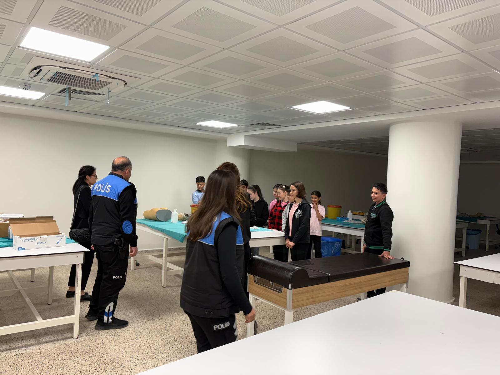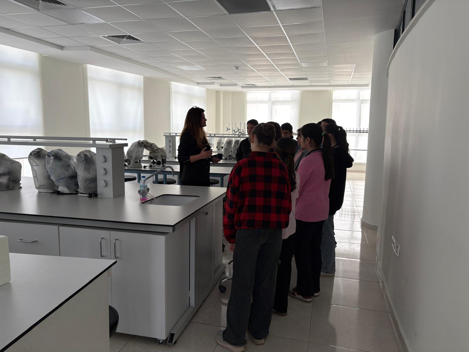 Kanuni Ortaokulu 8. sınıf öğrencileri, öğretmenleri eşliğinde Fakültemizi ziyaret etti. Ziyaret kapsamında öğrenciler, fakültemizin dersliklerini, laboratuvarlarını, çalışma salonunu ve fakülte kütüphanesini gezerek tıp eğitimi ortamını yakından tanıma fırsatı buldular.