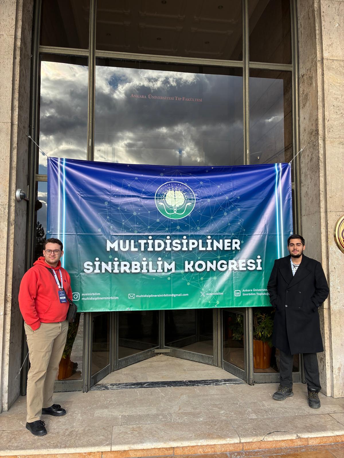 Ankara Üniversitesi Tıp Fakültesi tarafından 27-28 Aralık 2025 tarihlerinde düzenlenen Multidisipliner Sinirbilim Kongresine Fakültemiz Dönem 1 öğrencilerinden Emir Taha Karagüzel ve Oğuz Kağan Uçar katılım sağlamıştır.