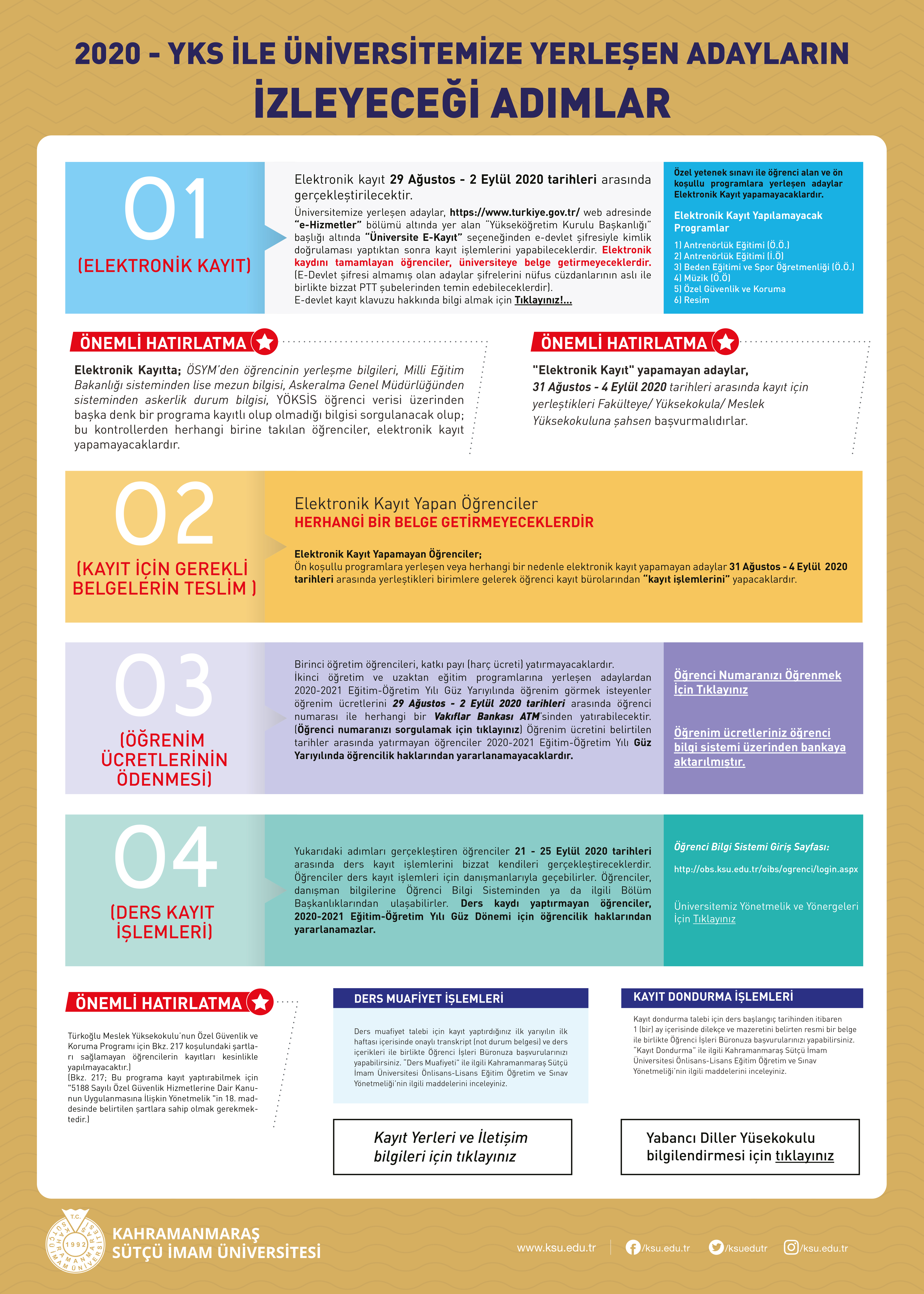 Kayıtlar E-devlet üzerinden 29 Ağustos-02 Eylül 2020 tarihleri arasında https://giris.turkiye.gov.tr/Giris/ adresinden yapılacaktır.