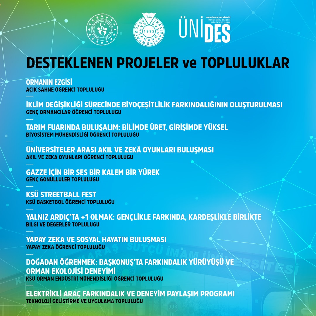 KSÜ’den 10 Öğrenci Topluluğu Projesi ÜNİDES’ten Destek Almaya Hak Kazandı