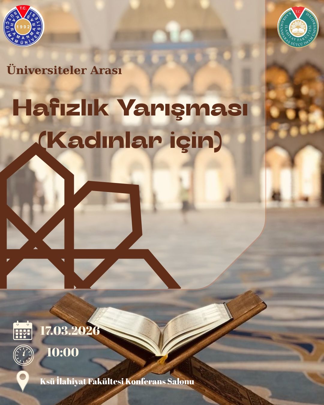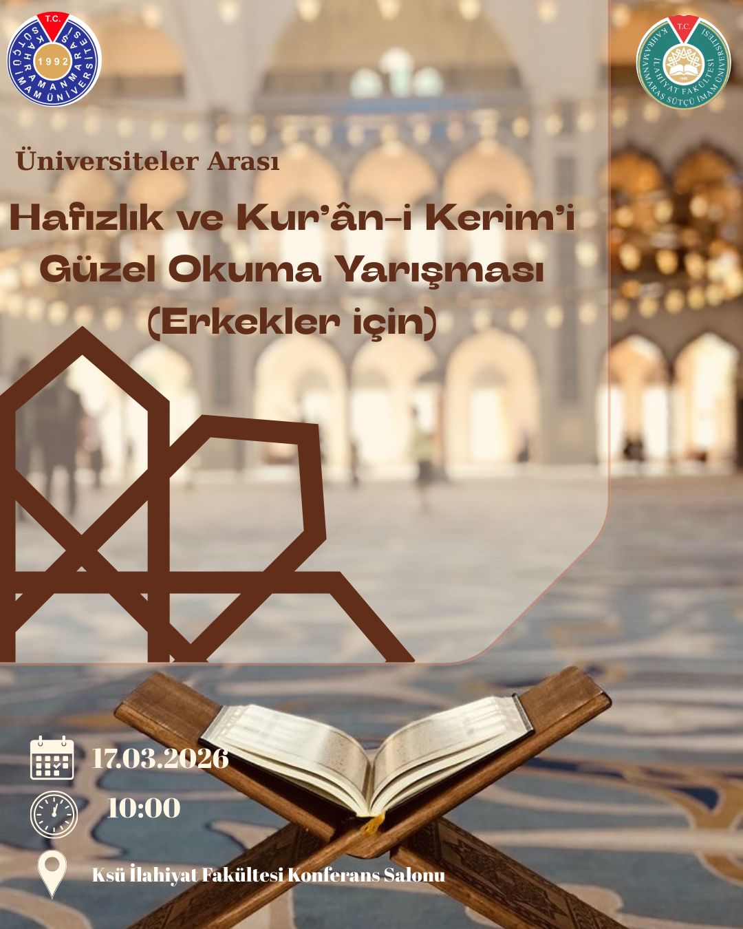 Diyanet İşleri Başkanlığı ile Yükseköğretim Kurulu tarafından; üniversite öğrencileri arasında Hafızlık ve Kur’ân-ı Kerim’i Güzel Okuma Yarışmaları düzenlenecektir.