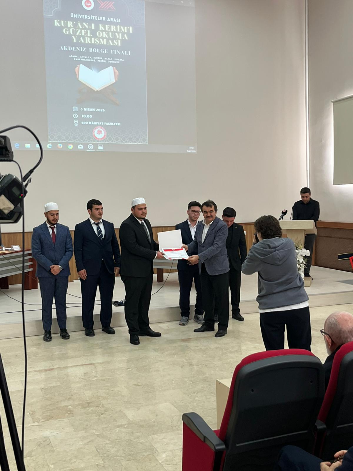 Üniversiteler Arası Kuranı Kerim Güzel Okuma Yarışmasında öğrencimiz Onur ÇAVDAR Akdeniz Bölge Birincisi olmuştur. Öğrencimizi ve emeği geçen hocalarımızı tebrik ederiz.