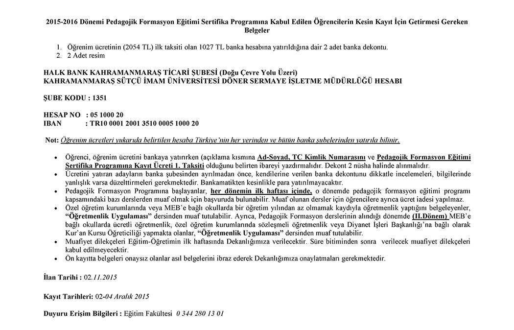 PEDAGOJİK FORMASYON 150 KİŞİLİK KONTENJANIN ASIL VE YEDEK KAZANANLAR LİSTESİ