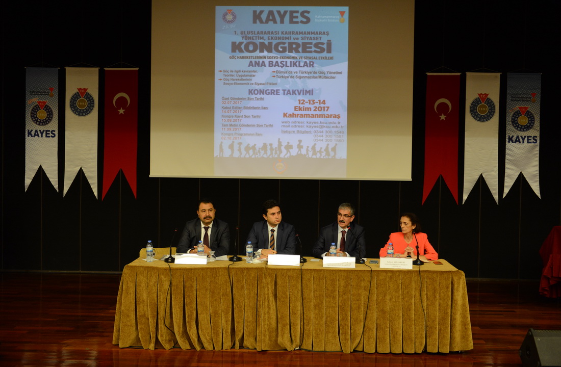 Kahramanmaraş Sütçü İmam Üniversitesi (KSÜ) İktisadi ve İdari Bilimler Fakültesi (İİBF) tarafından Kahramanmaraş Büyükşehir Belediyesinin katkılarıyla düzenlenen “Göç Hareketlerinin Sosyo-Ekonomik ve Siyasal Etkileri” temalı “1.Uluslararası Kahramanmaraş Yönetim Ekonomi ve Siyaset Kongresi” (KAYES) Polis Akademisi Öğretim Üyesi ve Ortadoğu Uzmanı Prof. Dr. Mehmet Şahin’in katıldığı açılış oturumuyla başladı.