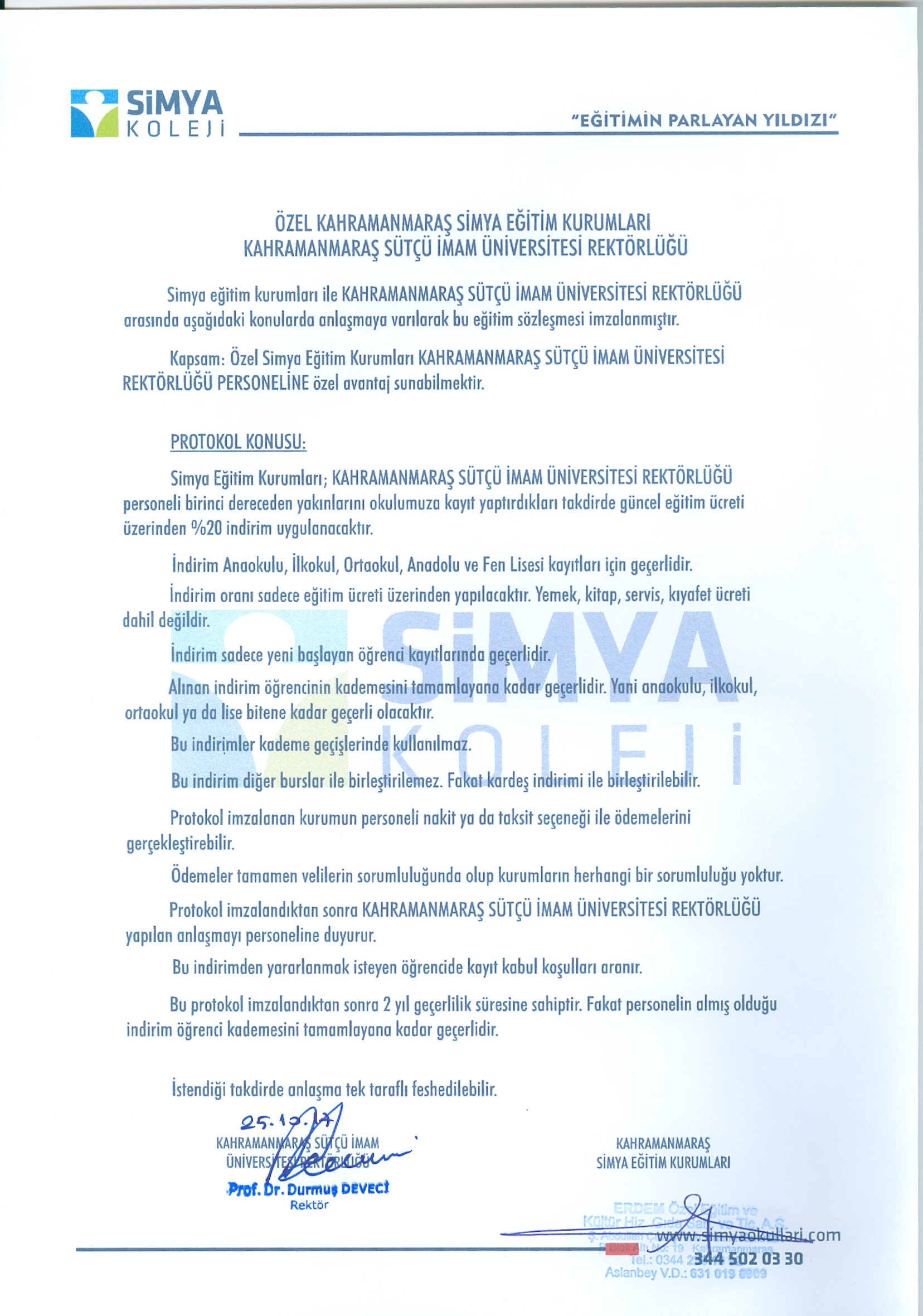 Üniversitemiz ile Özel Kahramanmaraş Simya Eğitim Kurumları Arasında Düzenlenen Protokol Duyurusu