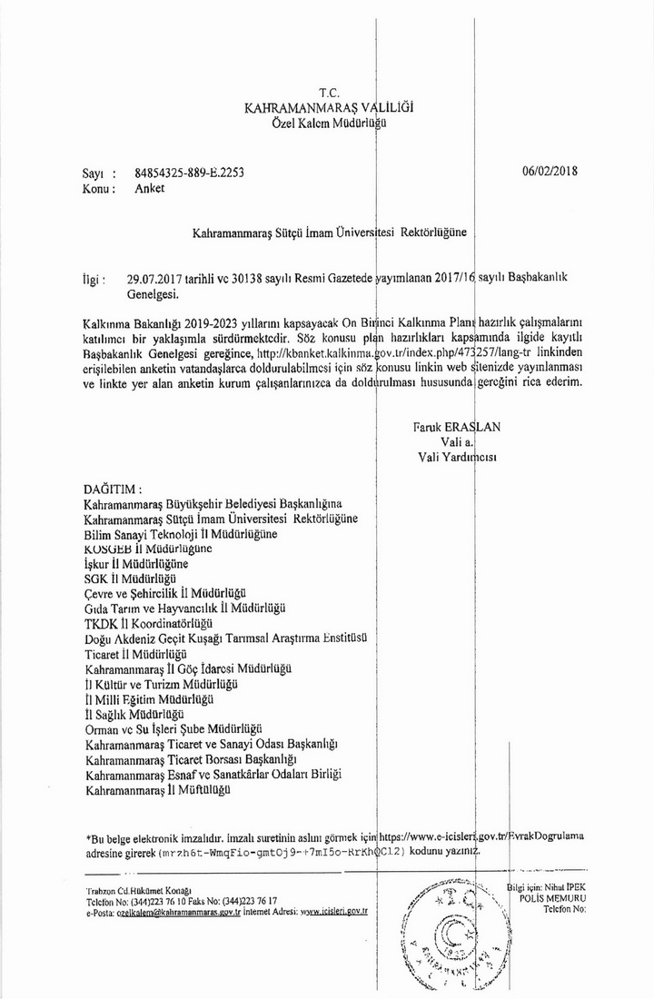 Kahramanmaraş Valiliği Duyurusu: Kalkınma Bakanlığı 11. Kalkınma Planı Vatandaş Anketi