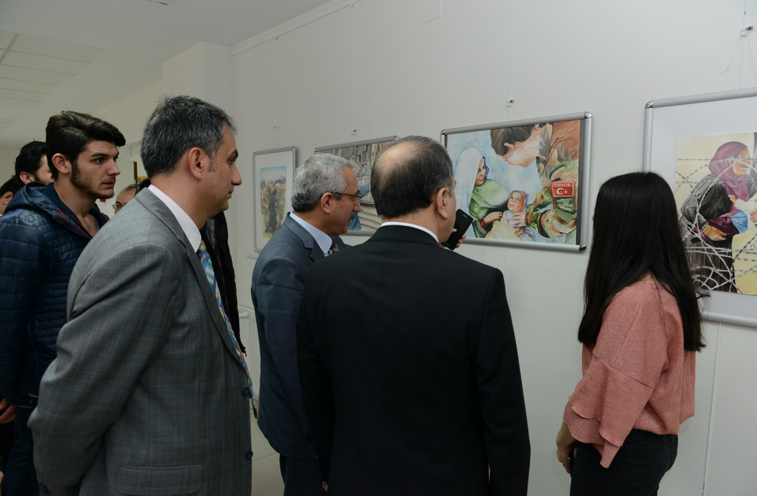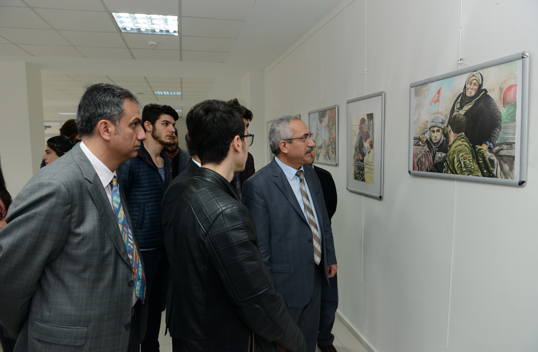 Sergi kapsamında ayrıca GSF öğrencileri tarafından yapılan suluboya resimlerden oluşan “Kadın ve Afrin” sergisi de yer aldı. Kadınların Afrin’de gerçekleştirilen ‘Zeytin Dalı Harekâtı’ kapsamındaki desteği, asker annesi ve asker eşlerinin fedakârlığını resmeden tablolar ziyaretçilerin büyük beğenisini topladı.