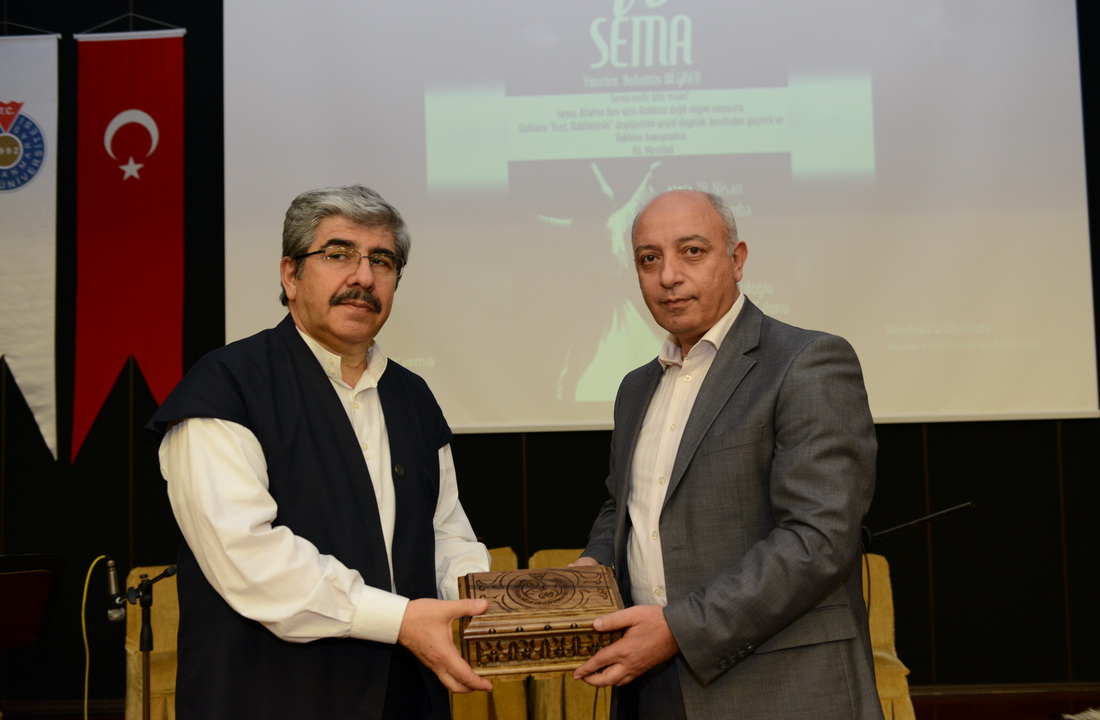 Programın sonunda KSÜ İktisadi ve İdari Bilimler Fakültesi Öğretim Üyesi Prof. Dr. İsmail Bakan tarafından Hz. Mevlana Kültürü, Tasavvuf Musikisi ve Folkloru Araştırma ve Yaşatma Derneği tasavvuf musikisi ekibinden Şef Bahaeddin Bilginer’e hediye takdim edildi.