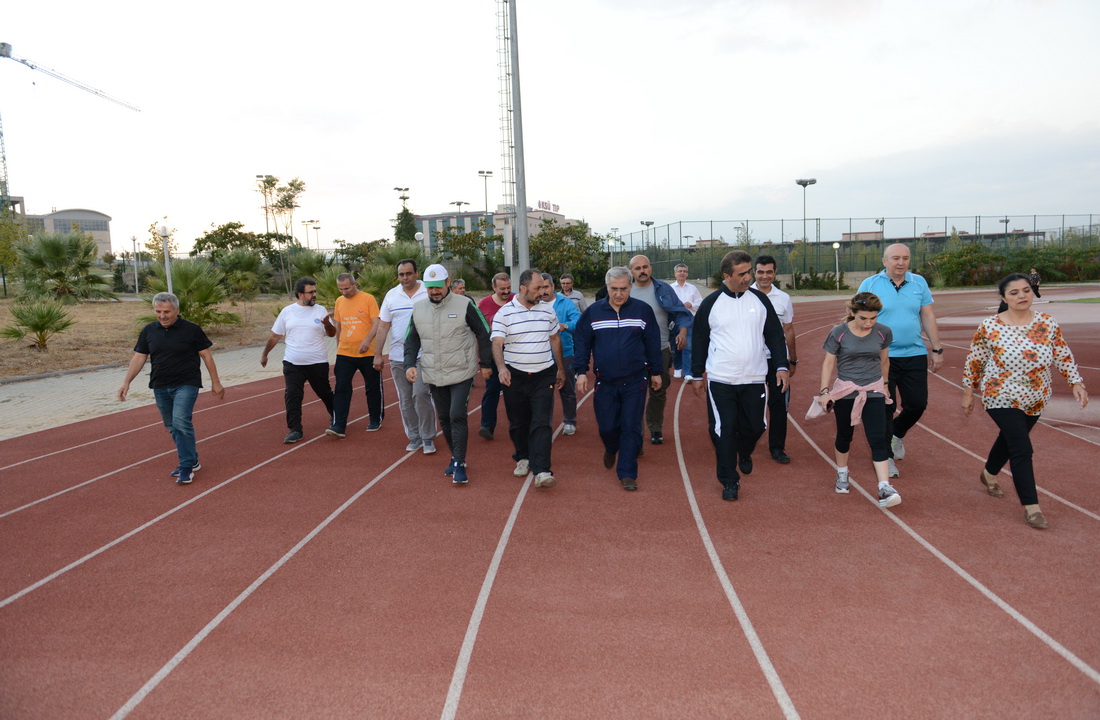 Açılış kurdelesinin kesilmesinin ardından Rektör Can ve beraberindekiler sağlıklı bir yaşama dikkat çekmek için yürüyüş gerçekleştirdiler.
