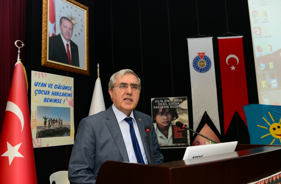 KSÜ Cahit Zarifoğlu Konferans Salonunda gerçekleştirilen Anaokulu öğrencileri ve ailelerinin katıldığı etkinliğin açılış konuşmasını üniversitemiz Rektörü Prof. Dr. Niyazi Can yaptı. Çocuk haklarını çocuklara, çocukların diliyle anlatmayı amaç edinen drama etkinliğinin önemine dikkat çeken Rektör Can, “Geleceğimizin teminatı olan çocuklarımızı sağlıklı bireyler olarak yetiştirmek bizim en temel vazifemizdir.” diye konuştu.