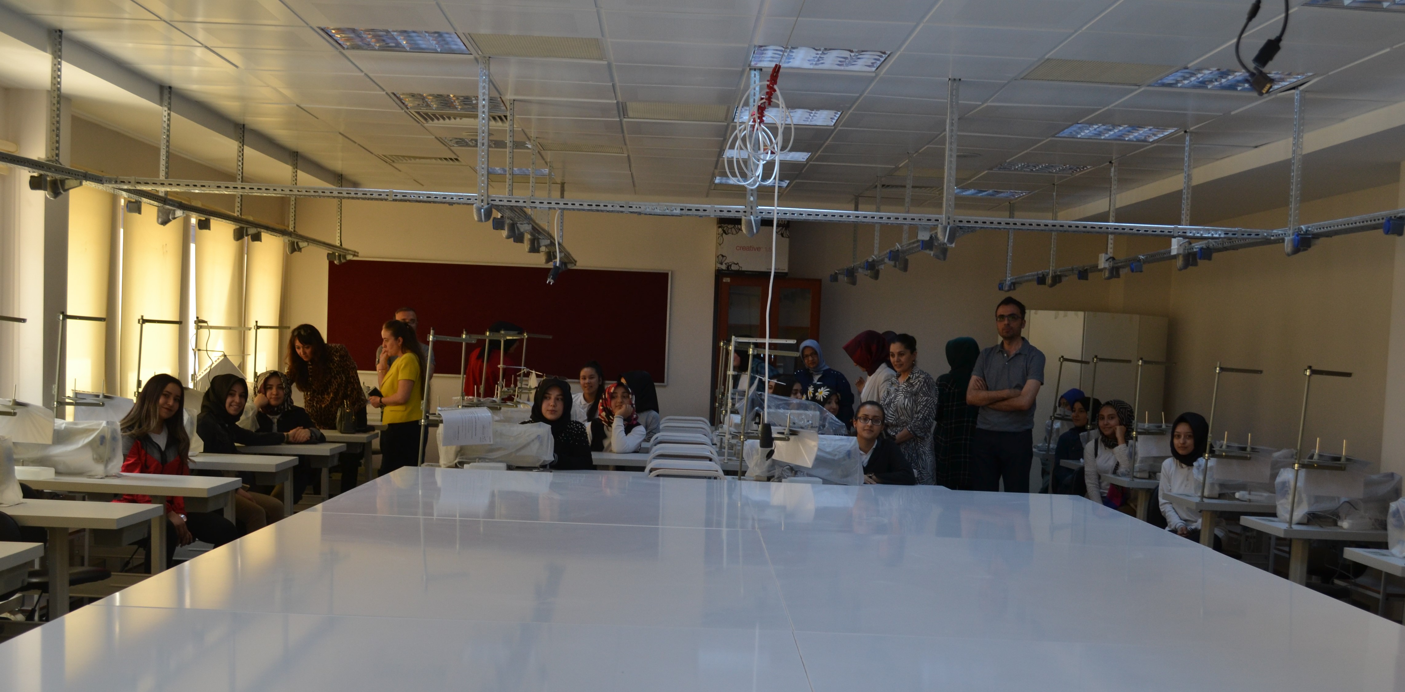 Ziyaretin sonraki kısmında 2018-2019 Eğitim-Öğretim yılında ilk öğrenci alımını gerçekleştiren, Güzel Sanatlar Fakültesi Tekstil ve Moda Tasarımı Bölümü bünyesinde kurulan Moda Tasarımı Atölyesi, Drapaj Atölyesi, Moda Resmi Atölyesi ve Bilgisayar Laboratuvarı öğrencilere tanıtılmıştır.