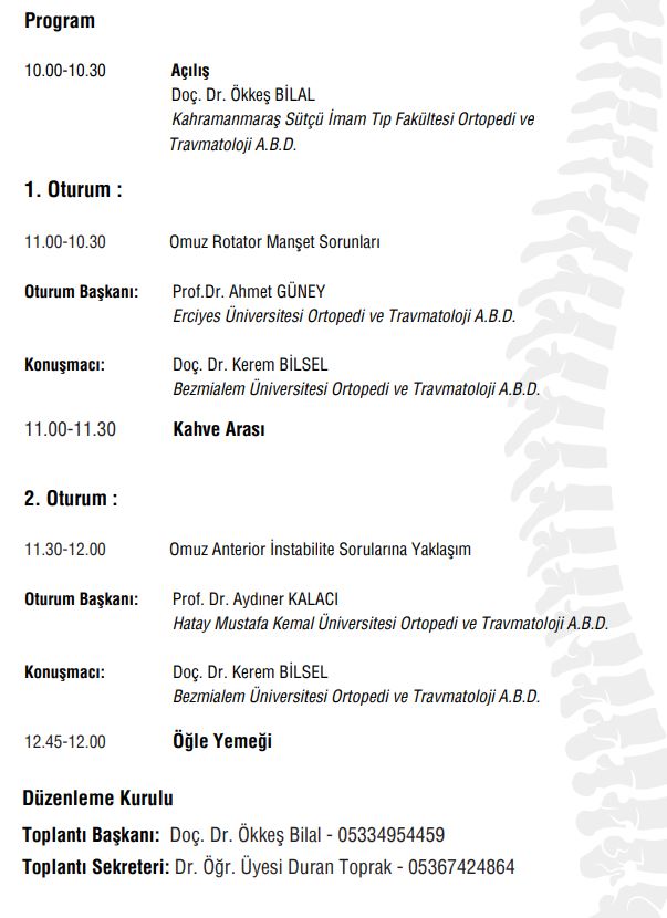 Yer: Kahramanmaraş Sütçü İmam Üniversitesi Sağlık Uygulama ve Araştırma Hastanesi Konferans Salonu