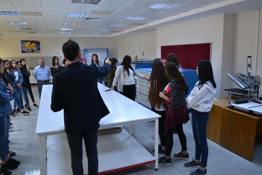 Ziyaretin diğer kısmında Tekstil ve Moda Tasarımı Bölümü hakkında bilgi verilerek Moda Tasarımı Atölyesi, Baskı Tasarımı Atölyesi, Drapaj Atölyesi, Moda Resmi Atölyesi ve Bilgisayar Laboratuvarı öğrencilere tanıtılmıştır.