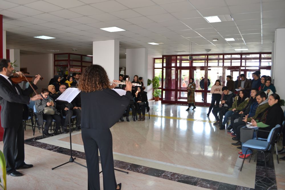 İktisadi ve İdari Bilimler Fakültesi’nde Güzel Sanatlar Fakültesi Müzik Bölümü tarafından ‘Açık Sahne Dinletileri II’ kapsamında ‘Keman & Flüt’ konseri gerçekleştirildi.
