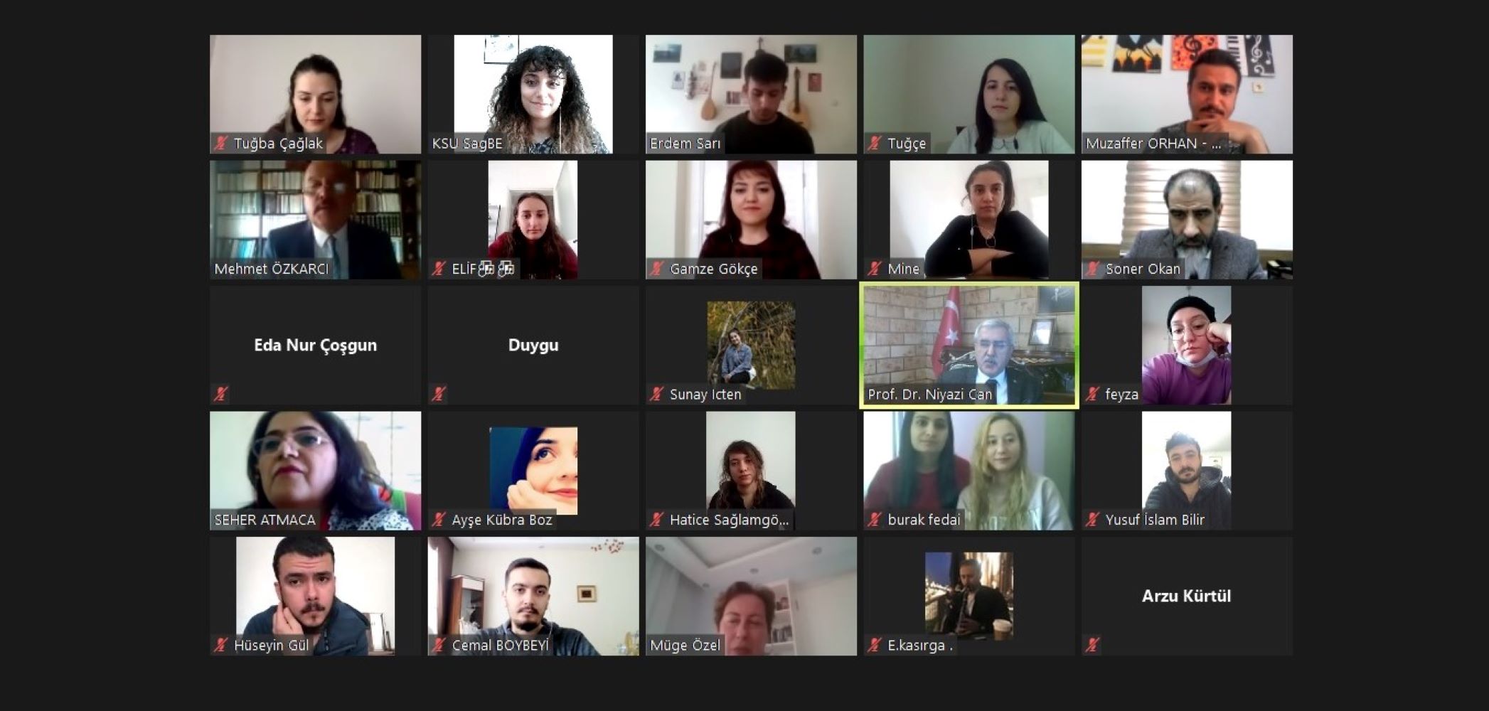 Zoom uygulaması üzerinden çevrim içi olarak gerçekleştirilen söyleşi programına üniversitemiz Rektörü Prof. Dr. Niyazi Can, GSF Dekanı Prof. Dr. Mehmet Özkarcı, farklı şehirlerden akademisyenler ve müzik eğitimcileri ile GSF öğrencileri katıldı.