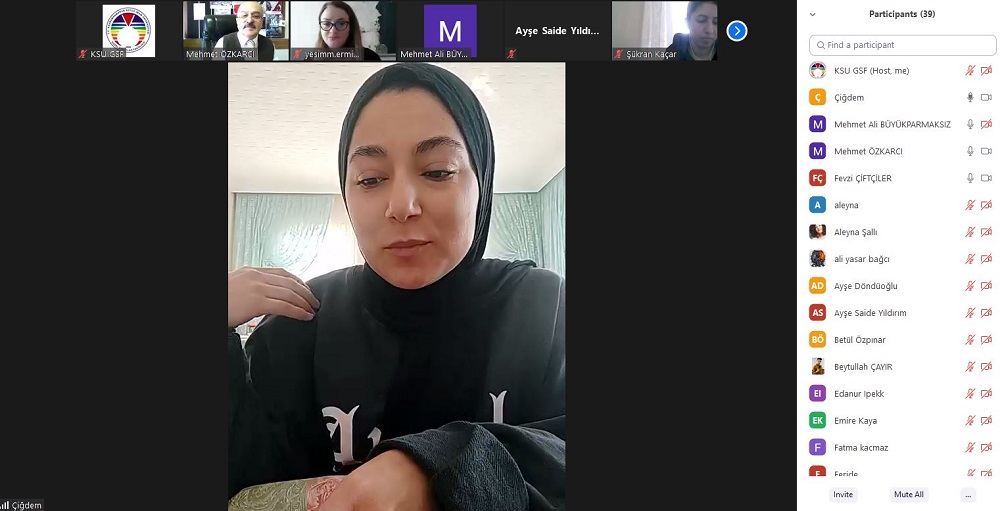 Kahramanmaraş Sütçü İmam Üniversitesi Güzel Sanatlar Fakültesi Dekanı Prof. Dr. Mehmet ÖZKARCI, Öğretim Elemanları ve Resim Bölümü öğrencilerinin katılımıyla, 2020-2021 Eğitim-Öğretim yılı Bahar yarıyılının ilk toplantısı, 2 Mart 2021 Salı günü saat 12:00’de ZOOM üzerinden gerçekleştirildi. Dekan ÖZKARCI, öğrencilere sürecin nasıl ilerlediğini, yapılan derslerde sıkıntı yaşayıp yaşamadıklarını sordu. Öğrenciler yapılan derslerde hiçbir sıkıntı yaşamadıklarını ancak hocalarını ve üniversiteyi özlediklerini dile getirdiler. Öğrenciler bir araya gelmekten çok mutlu oldukları ifade ettiler. Dekan ÖZKARCI, öğrencilerimizle online üzerinden sohbet programlarının devam edeceğini belirterek, programa katılan hocalara ve öğrencilere teşekkür etti.