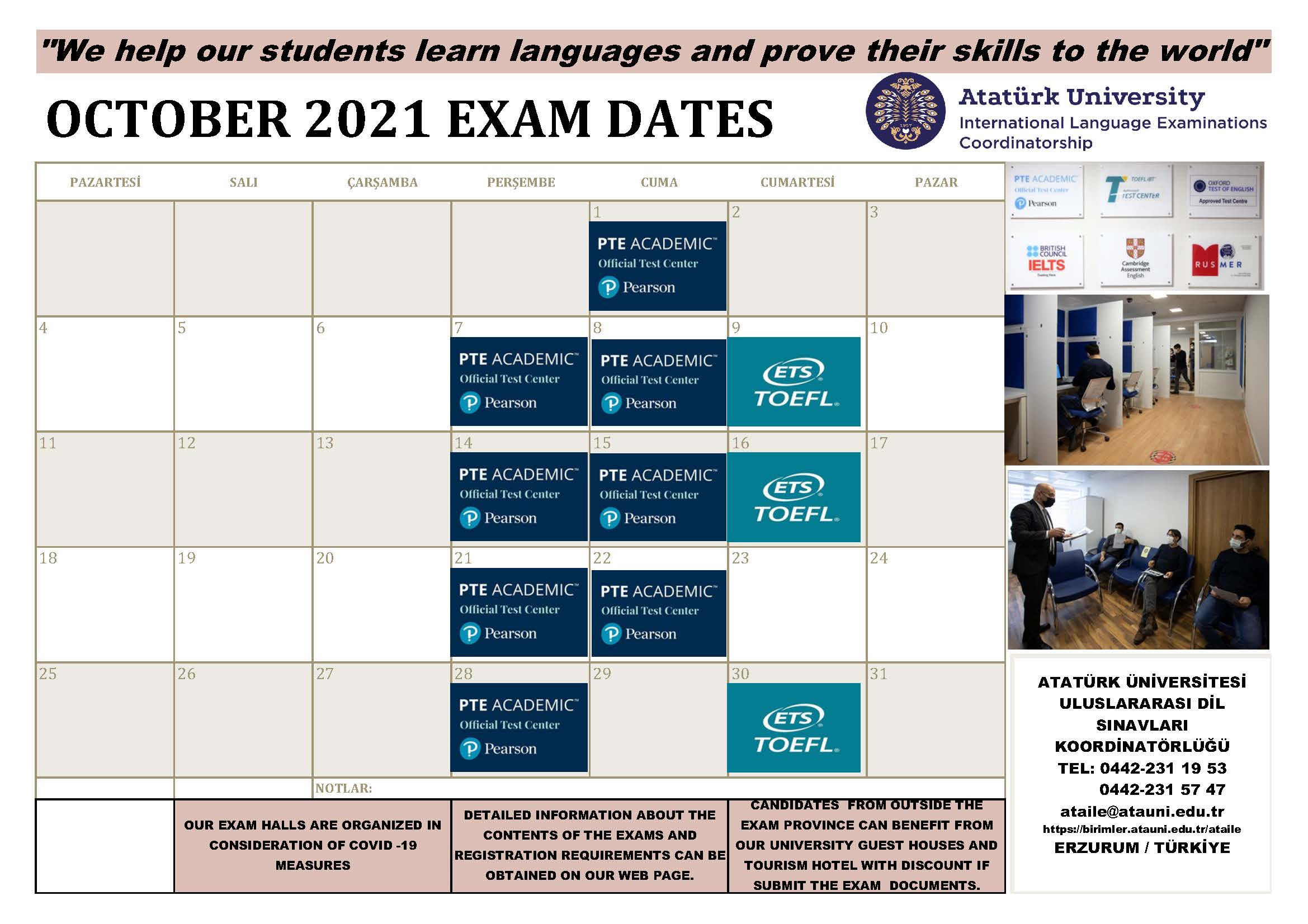 Atatürk Ünv. - Ekim Ayı Uluslararası Dil Sınavları