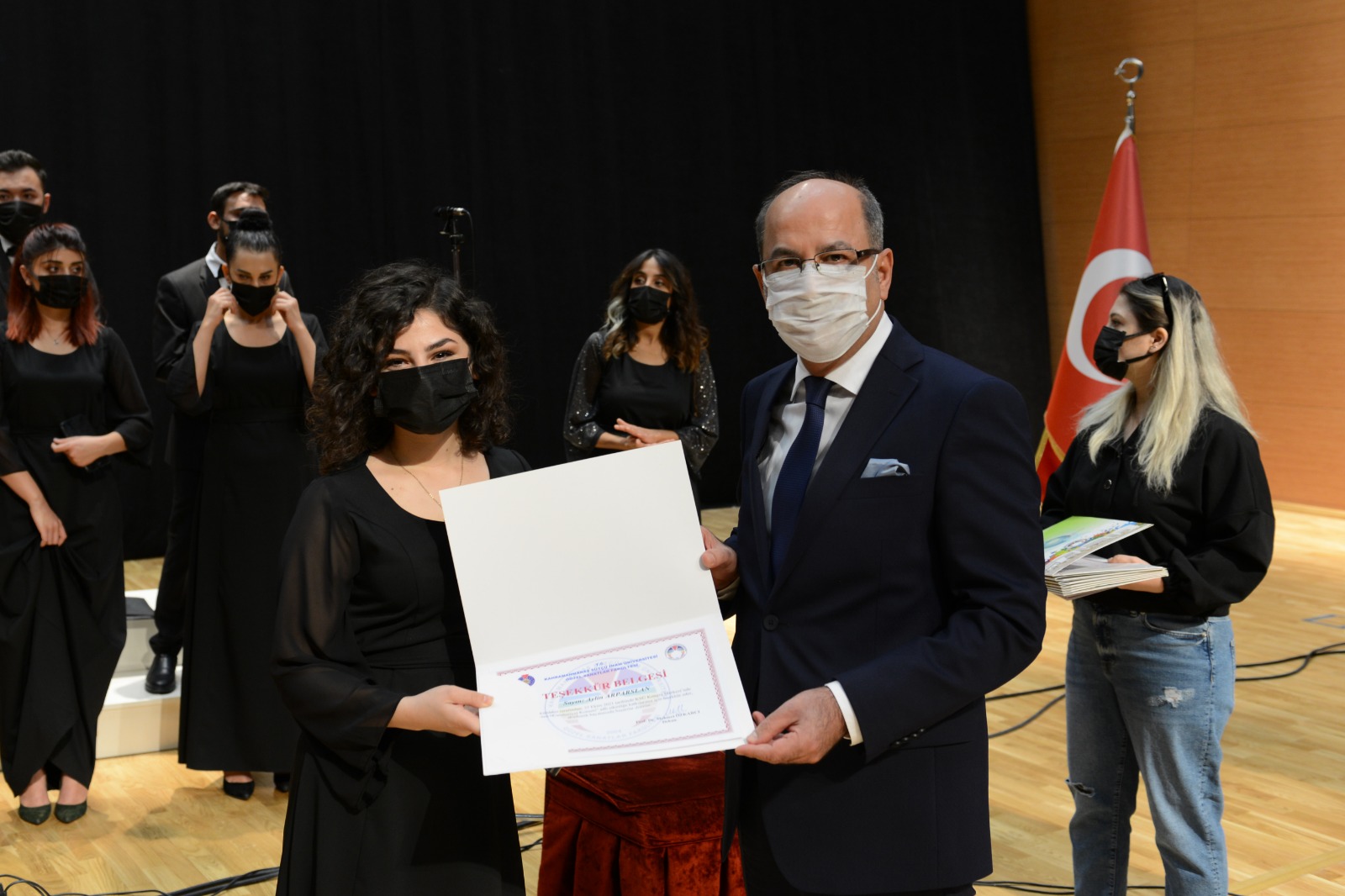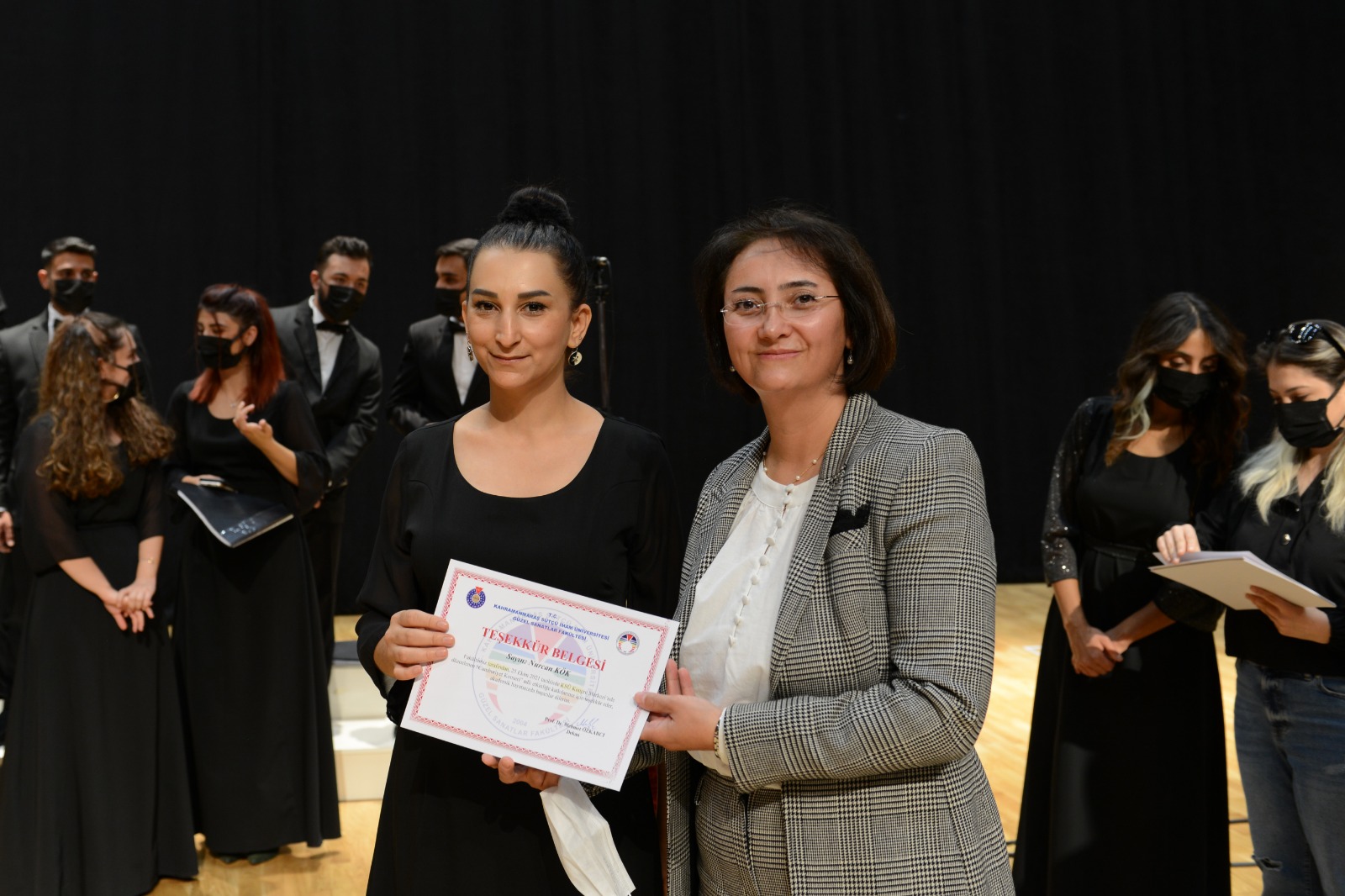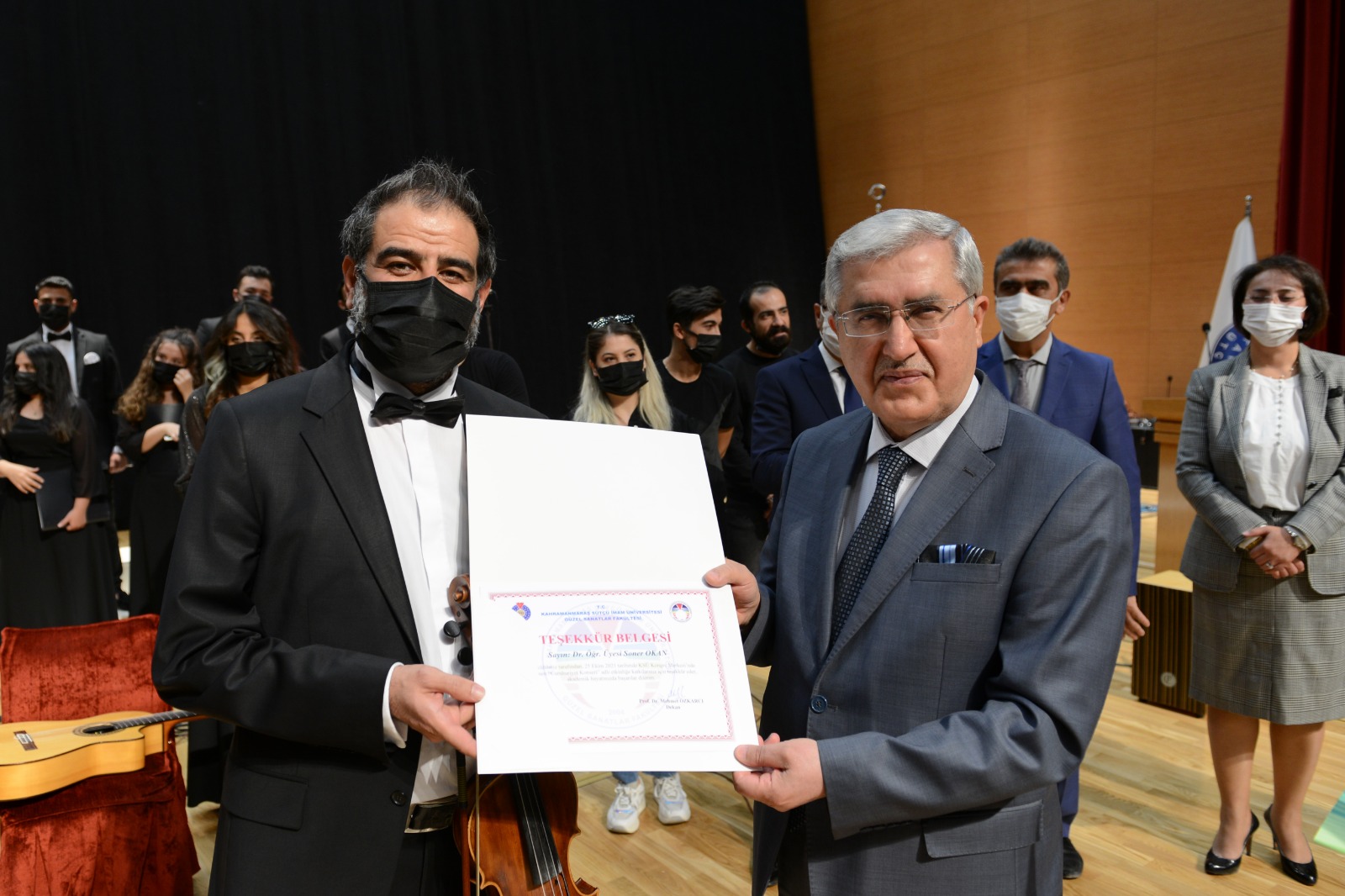 Konser programının sonunda Rektör Prof. Dr. Niyazi Can ve protokol üyeleri tarafından katkı sunanlara teşekkür belgeleri verildi.