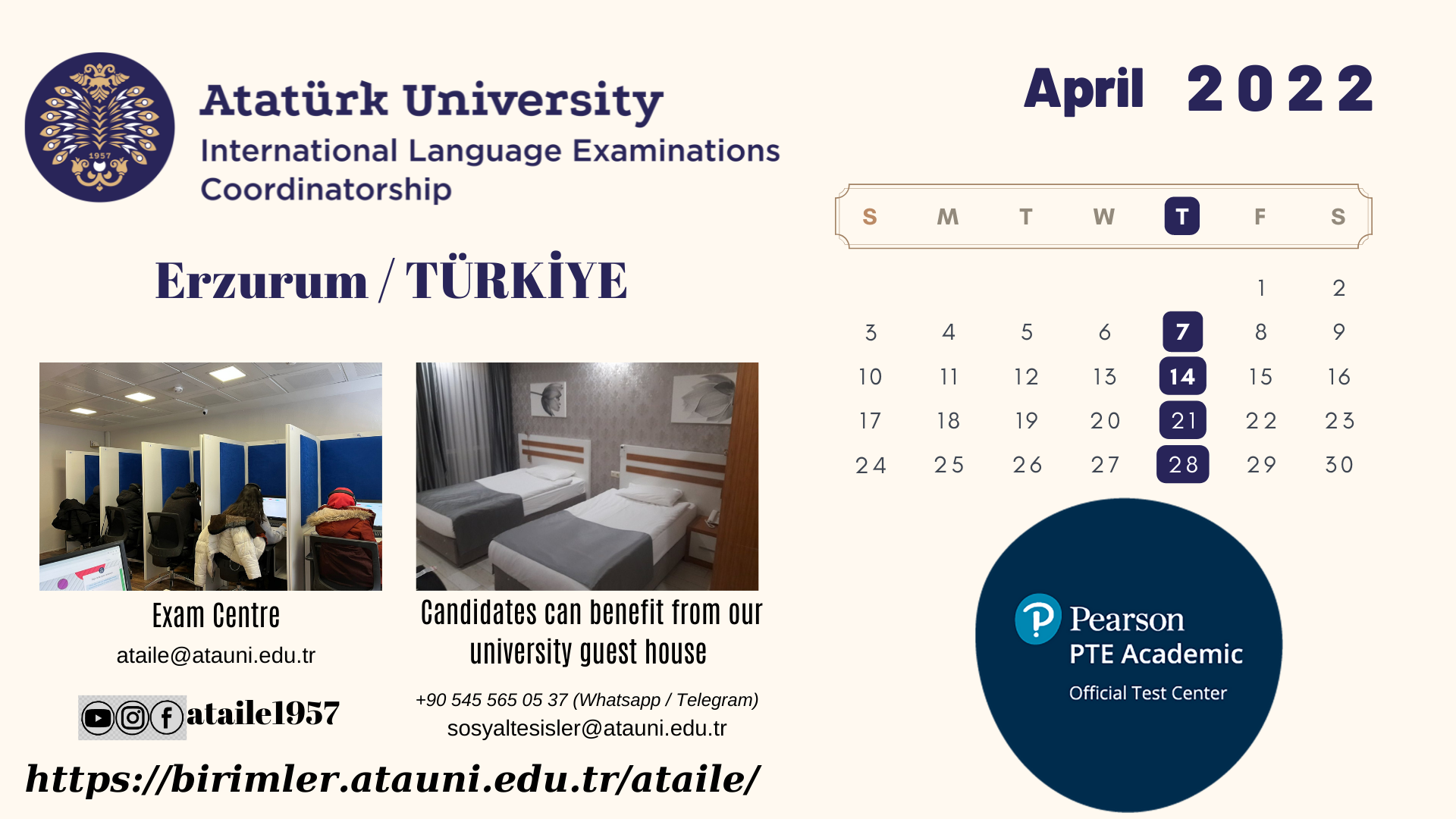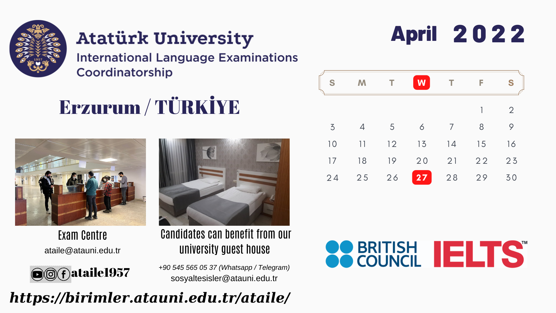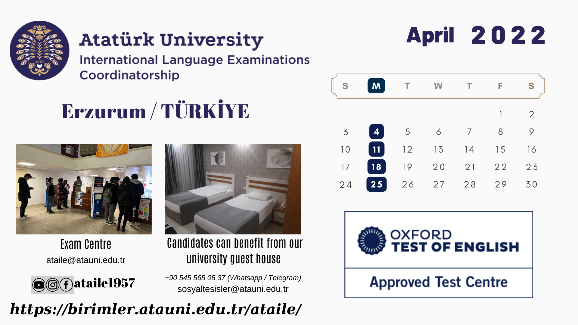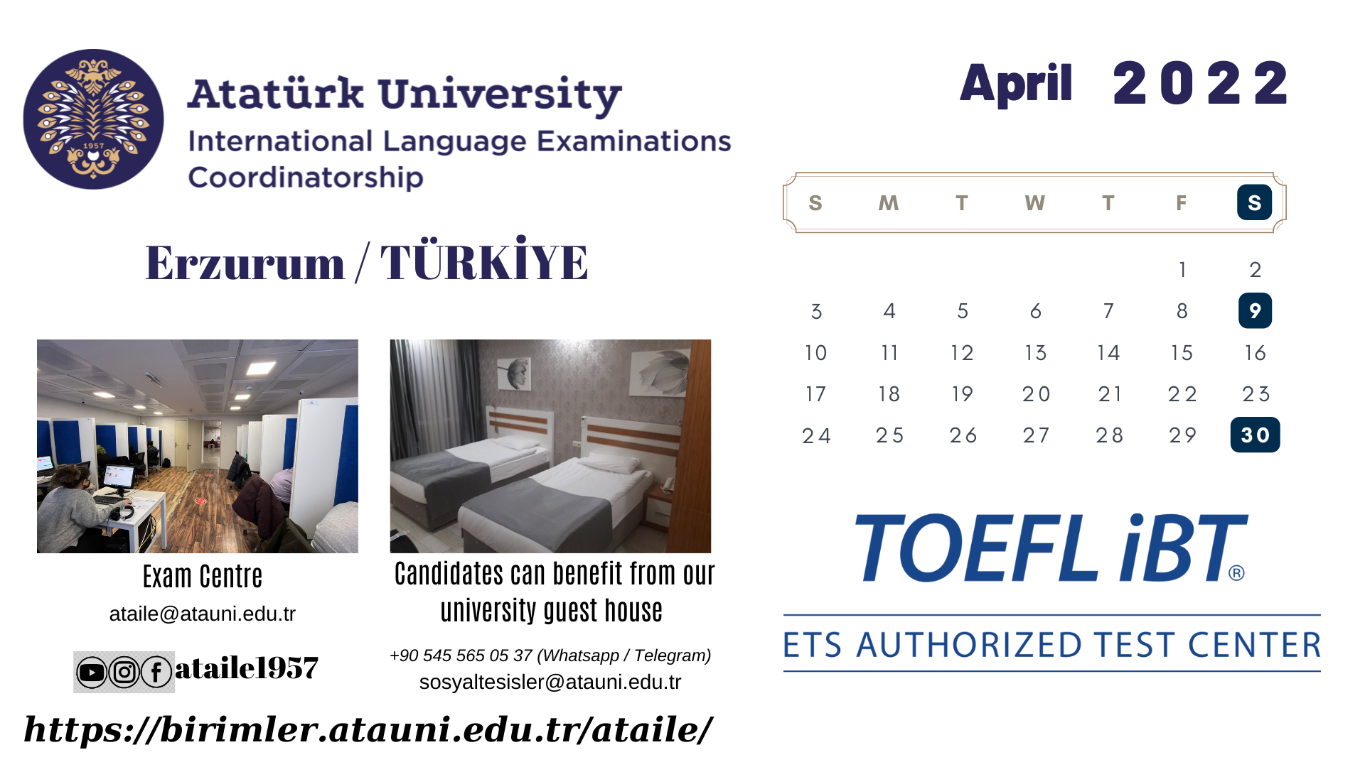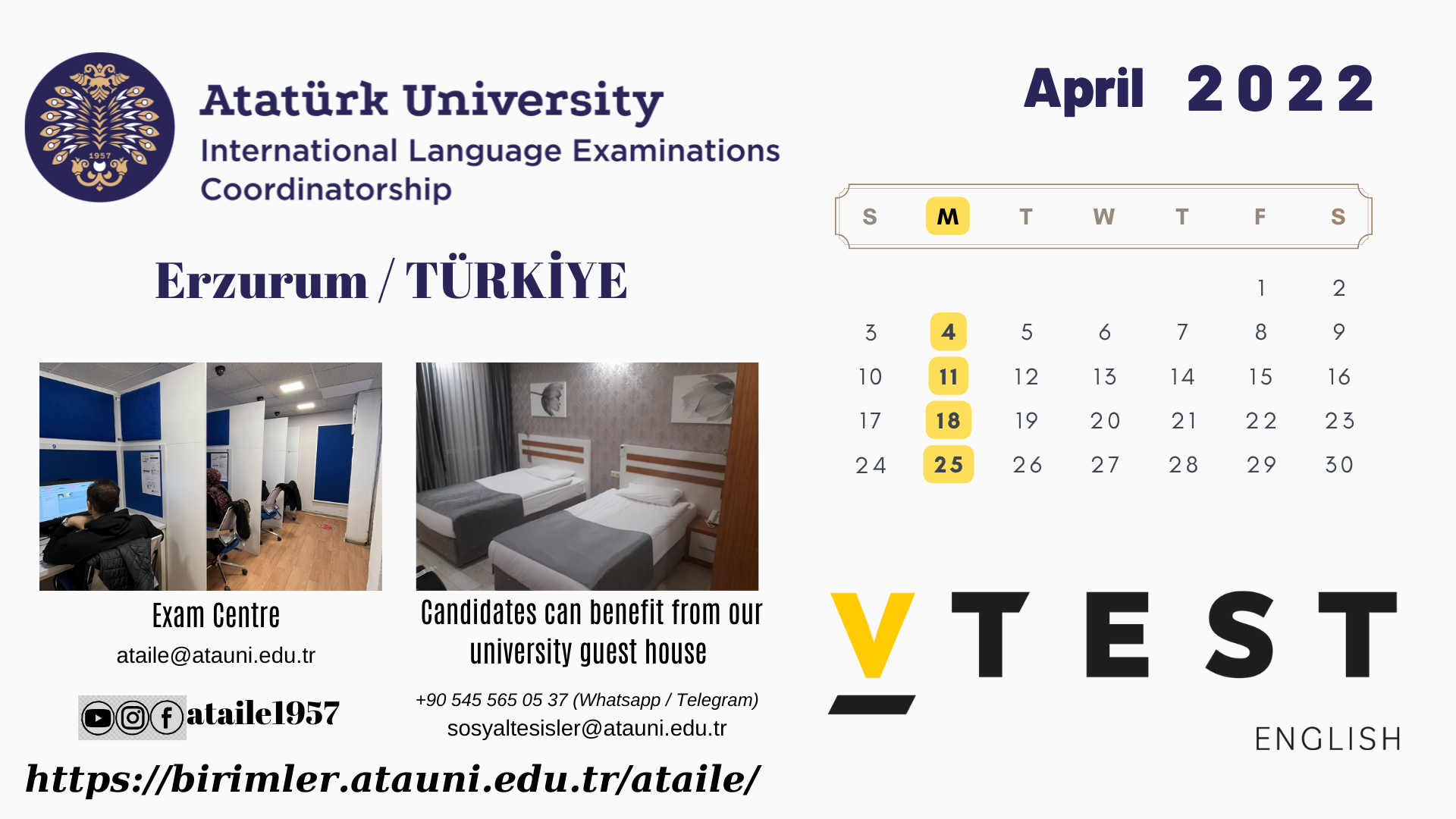Atatürk Ünv. - Uluslararası Dil Sınavları Nisan 2022 Takvimi Hk.