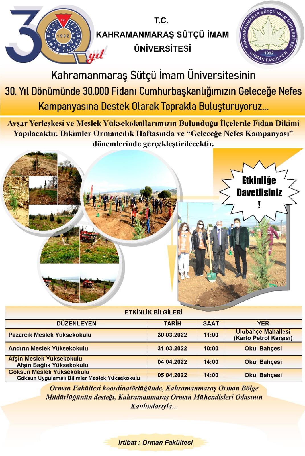 KSÜ Geleceğe Nefes Kampanyası Kapsamında 30. Yılda 30 Bin Fidanı Toprakla Buluşturuyor