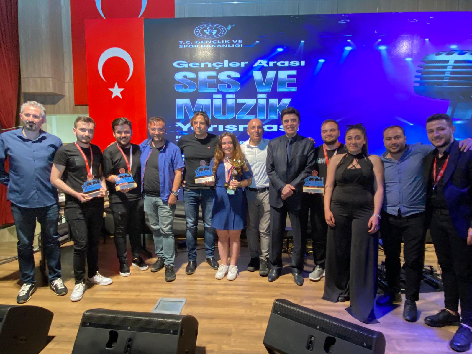 Güzel Sanatlar Fakültesi Müzik Bölümü öğrencileri, Gençlik ve Spor İl Müdürlüğü ve Bakanlık tarafından 09.05.2022-12.05.2022 tarihleri arasında Antalya’da düzenlenen“Gençler Arası Kültür ve Sanat Yarışmaları Bölge Finali”nde “Türk Müziği”, “Popüler Müzik” ve “Caz Müzik” kategorilerindenödüllerle döndüler. Müzik Bölümü dördüncü sınıf öğrencisi Rasim Burak BAYRAM Türk Müziği alanında, üçüncü sınıf öğrencisi Eda Nur ÇOŞGUN ise Popüler Müzik alanında üçüncülük ödüllerini kazanmışlardır. Caz Müzik kategorisinde ise ikinci ve üçüncü sınıf öğrencilerimizden Zehra Duygu DÖLEK, Muhammed EREN, Mücahit Hüseyin GÜL, Cemal BOYBEYİ’nin yer aldığı “VurdumDuyarlılar” isimli grup, birincilik ödülünü alarak Ağustos ayında Ankara’da düzenlenecek olan Türkiye finaline katılmaya hak kazanmışlardır. Öğrencilerimizi kutluyor, başarılarının devamını diliyoruz.