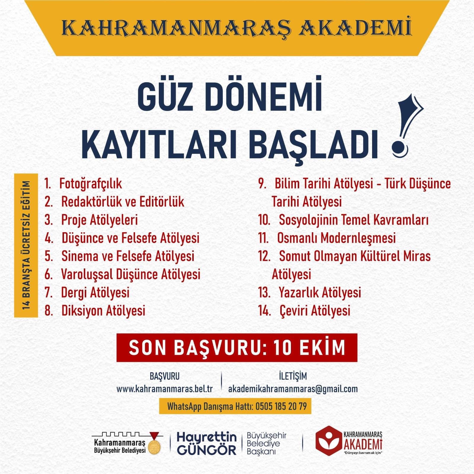 Kahramanmaraş Büyükşehir Belediyesi - Kahramanmaraş Akademi Güz Dönemi