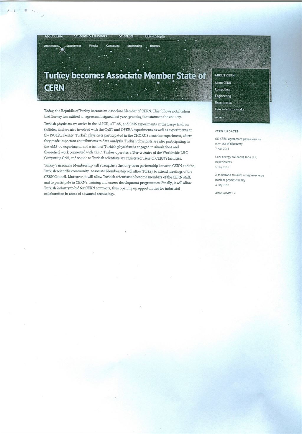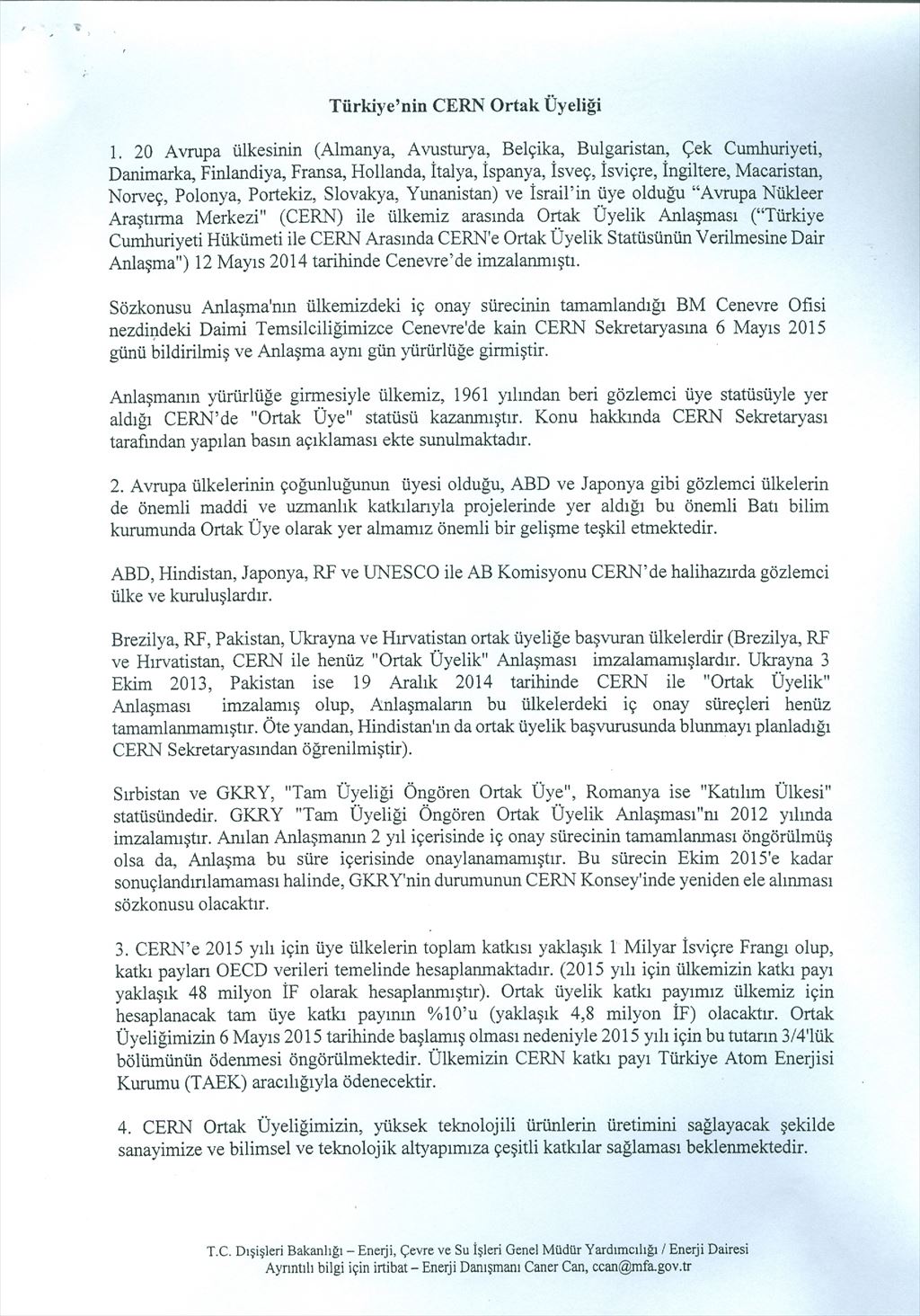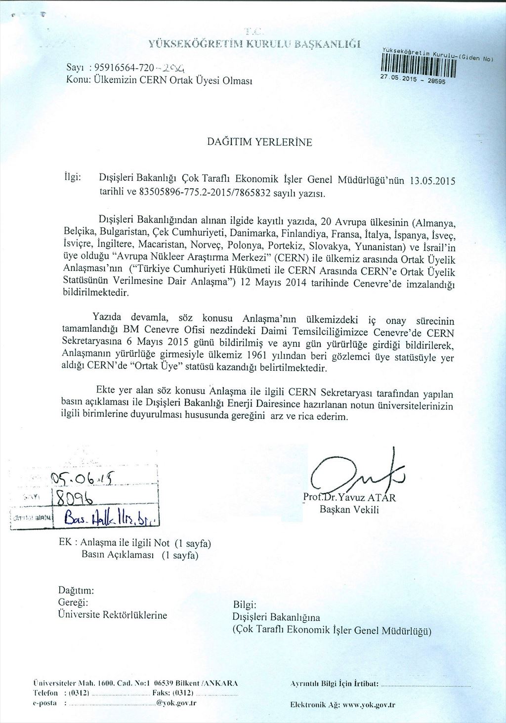 YÖK Duyurusu: "Ülkemizin CERN Ortak Üyesi Olması"