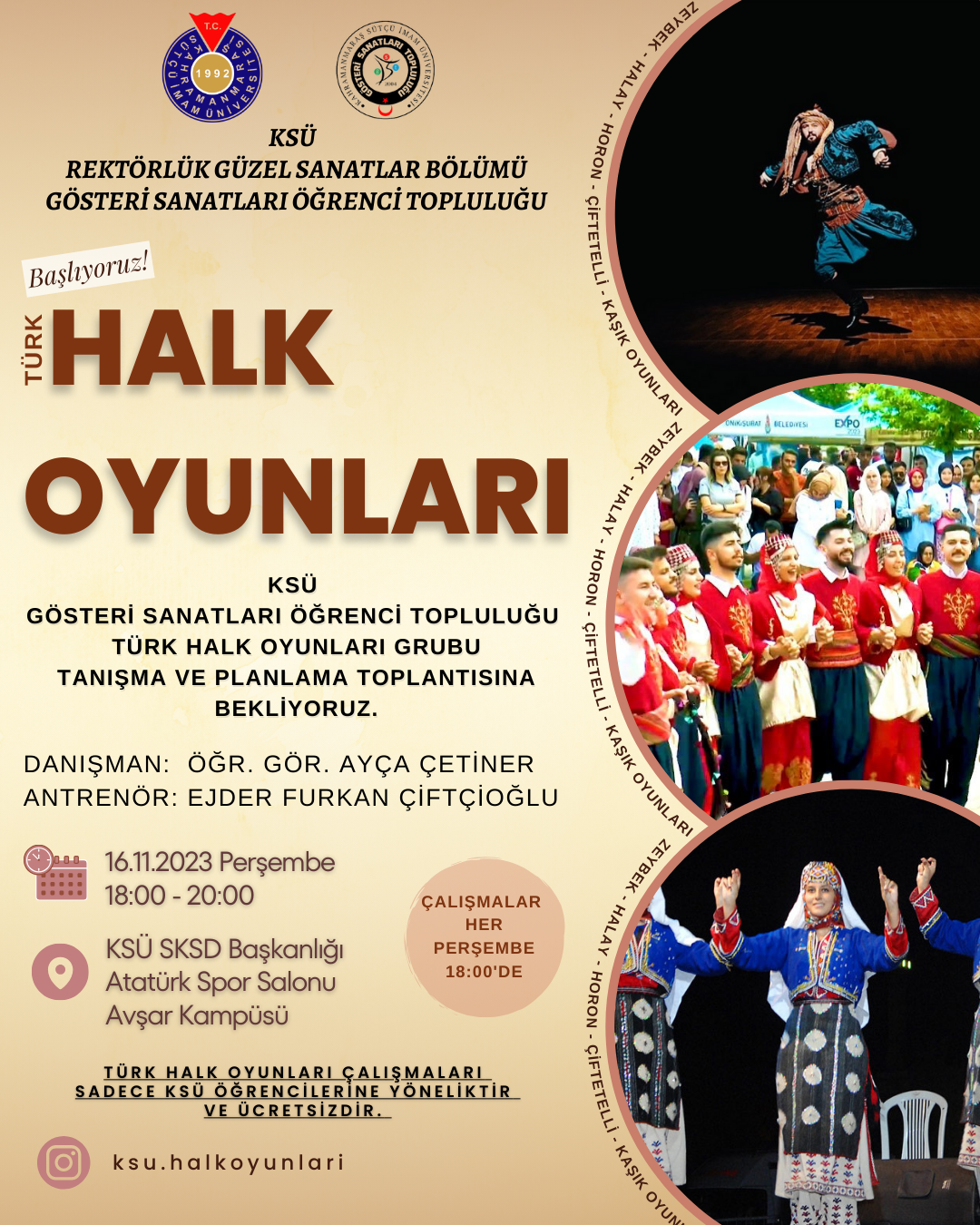 KSÜ Gösteri Sanatları Öğrenci Topluluğu Türk Halk Oyunları Grubu ve Tiyatro Grubu Duyurusu