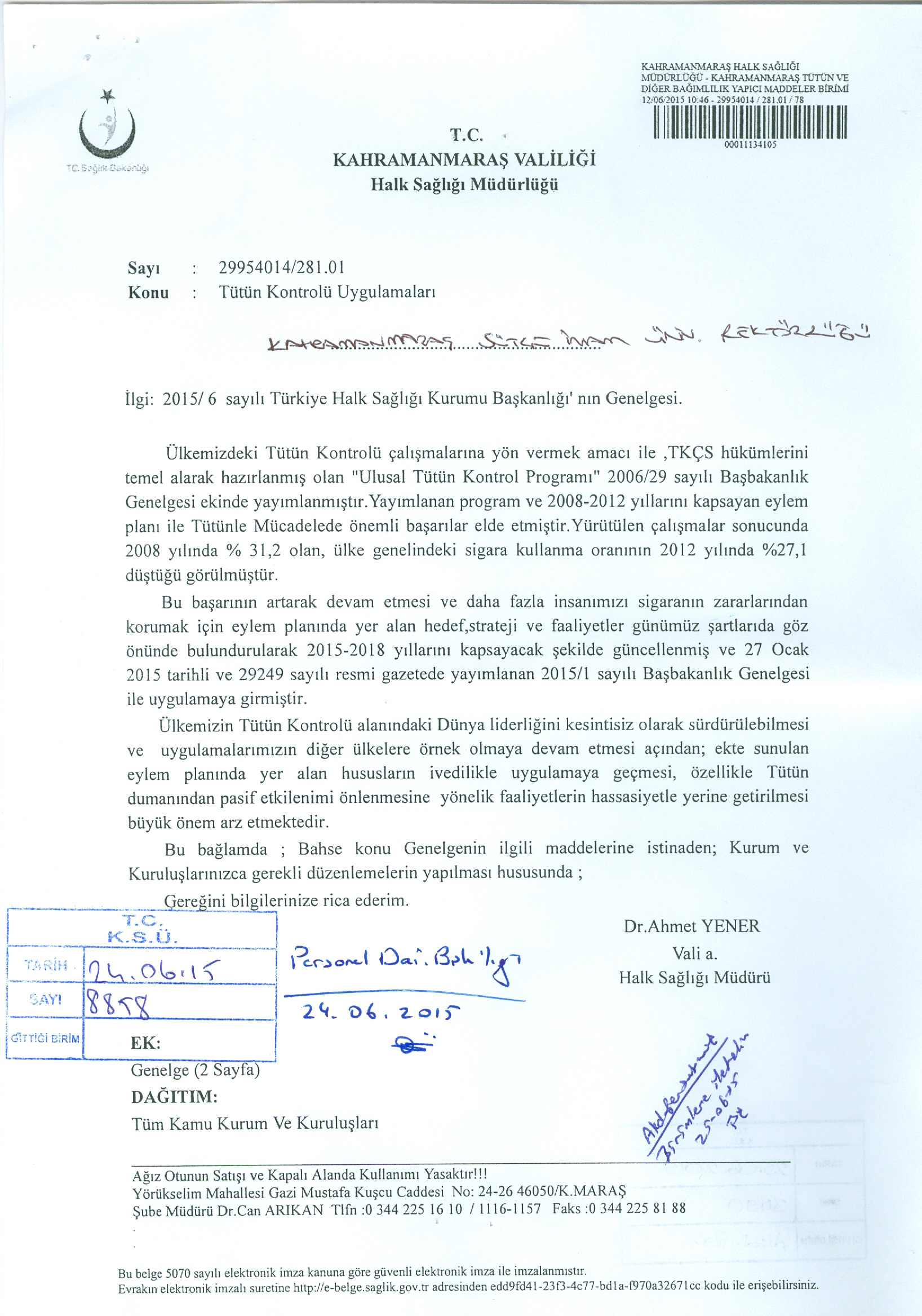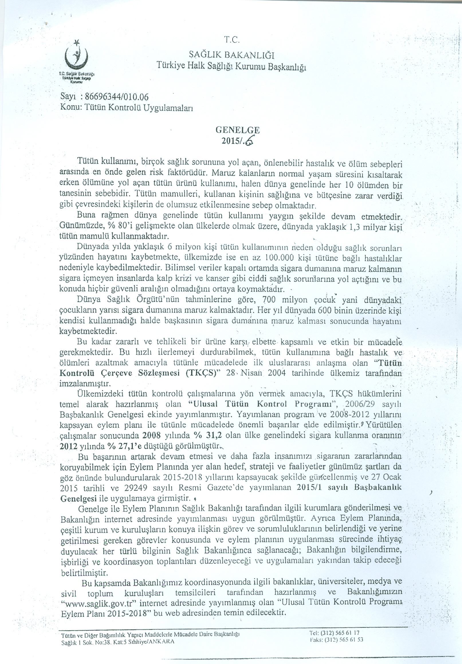 İl Halk Sağlığı Müdürlüğü Duyurusu: "Tütün Kontrolü Uygulamaları"