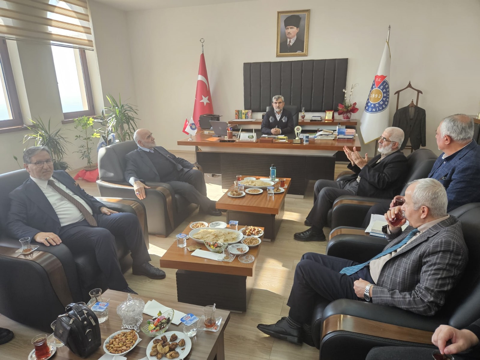 İslam Alimleri Vakfı yönetiminden Prof. Dr. Nasrullah Hacımüftüoğlu, Prof. Dr. Mustafa Karataş ve Yazar Ramazan Kayan 6-7- Şubat 2025 te Kahramanmaraş'ta yapılması düşünülen bölge toplantısı kapsamında fakültemizi ziyaret ettiler. Misafirlerimize ve bizleri yalnız bırakmayan hocalarımıza teşekkür ederiz.