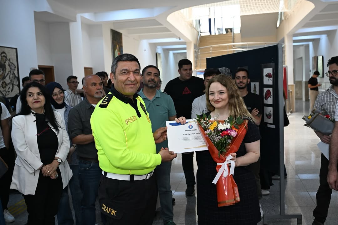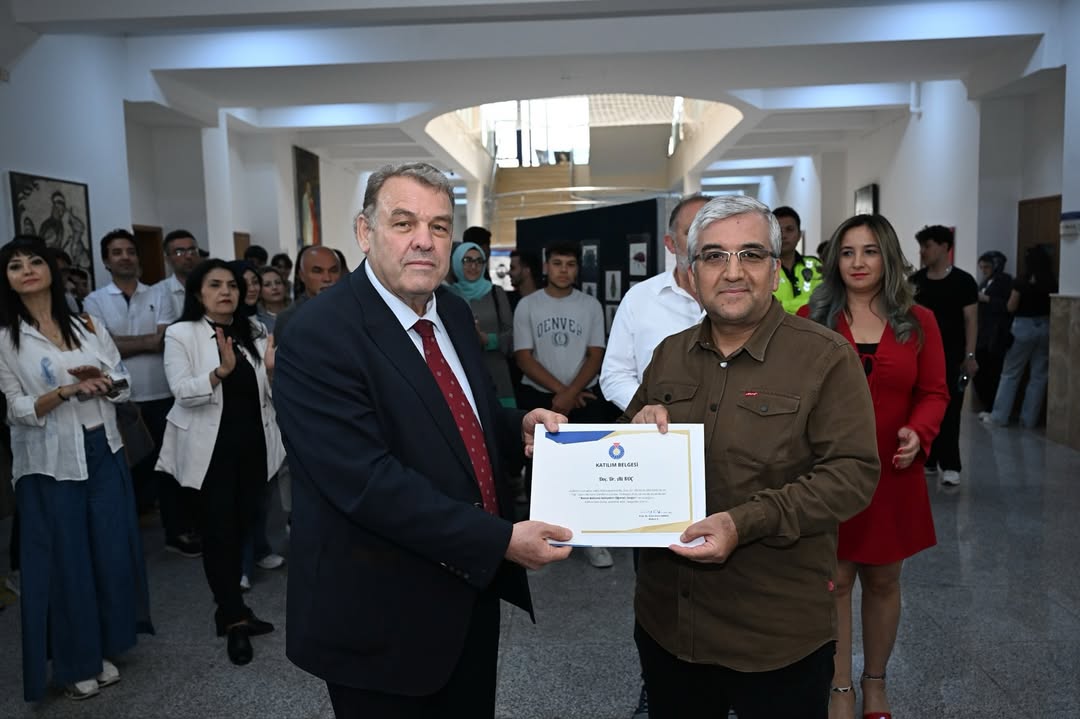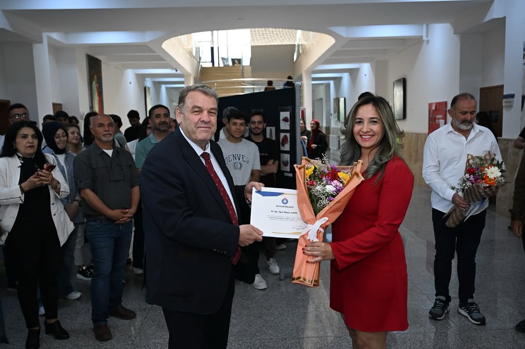 Açılış konuşmalarının ardından Resim Bölümü Öğretim Üyelerine belge ve çiçek takdim edildi.