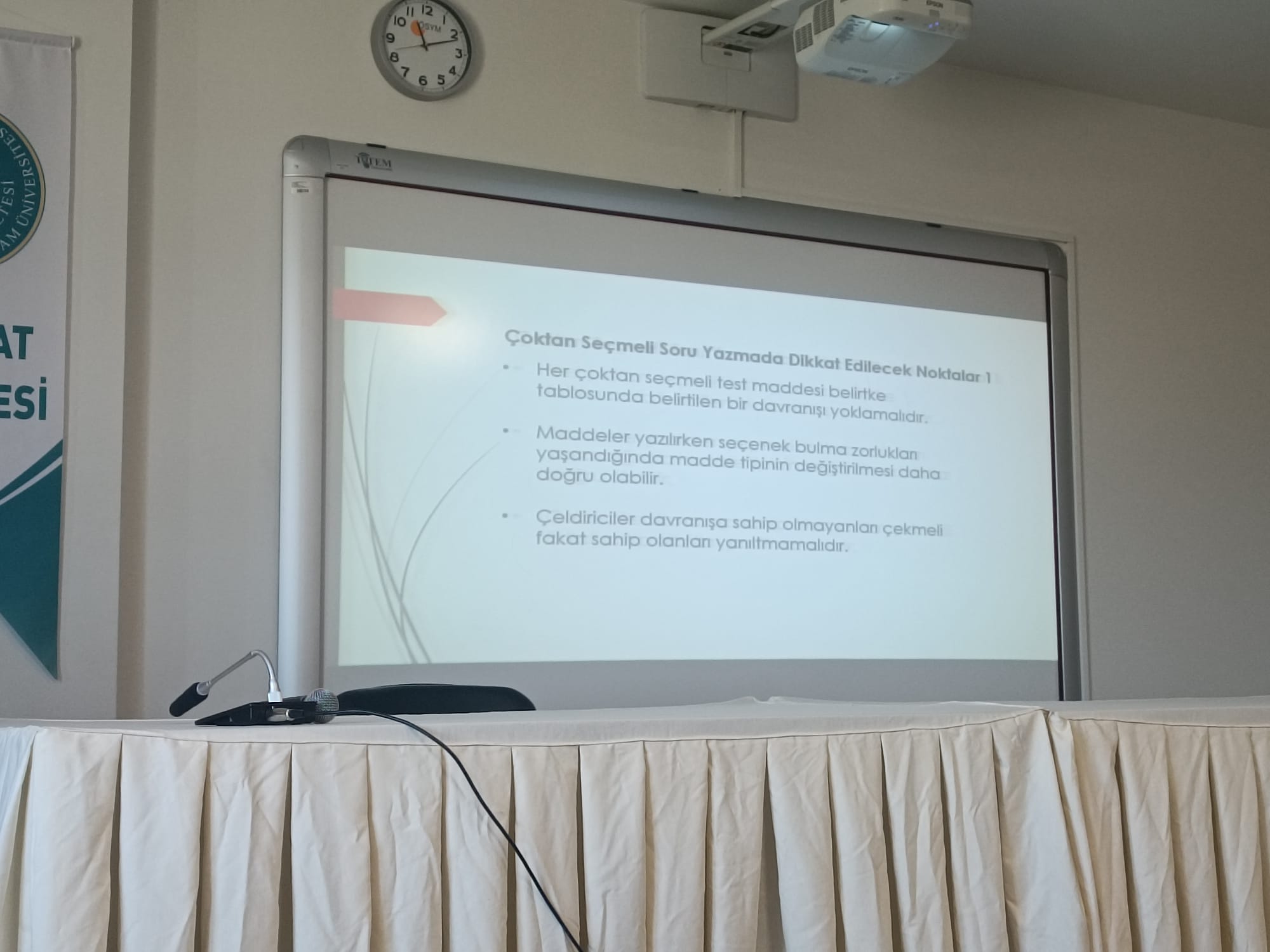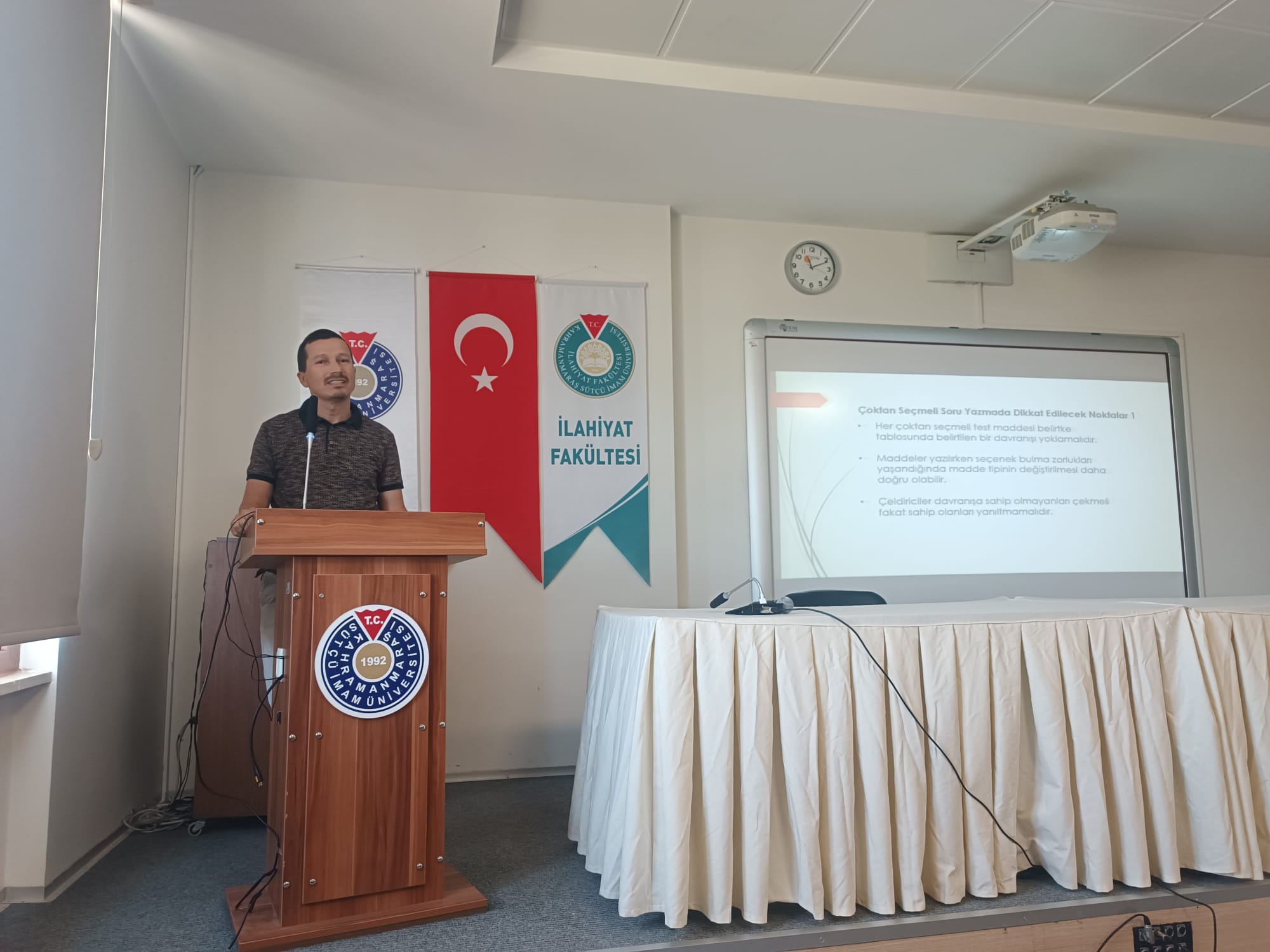 Fakültemiz stratejik planı kapsamında (Hedef 4: Öğretim Kadrosunun Güçlendirilmesi ve Niteliğinin Artırılması, Strateji 4: Eğiticinin Eğitimi Programlarının Verilmesi) öğretim elemanlarımızın öğretim kalitesinin artırılması amacıyla, Fakültemiz konferans salonunda, Eğitim Fakültesi Öğretim elemanı Doç. Dr. Levent YAKAR tarafından “Eğiticilerin Eğitimi ve Ölçme Değerlendirmeleri” konusunda eğitim verilmiştir.