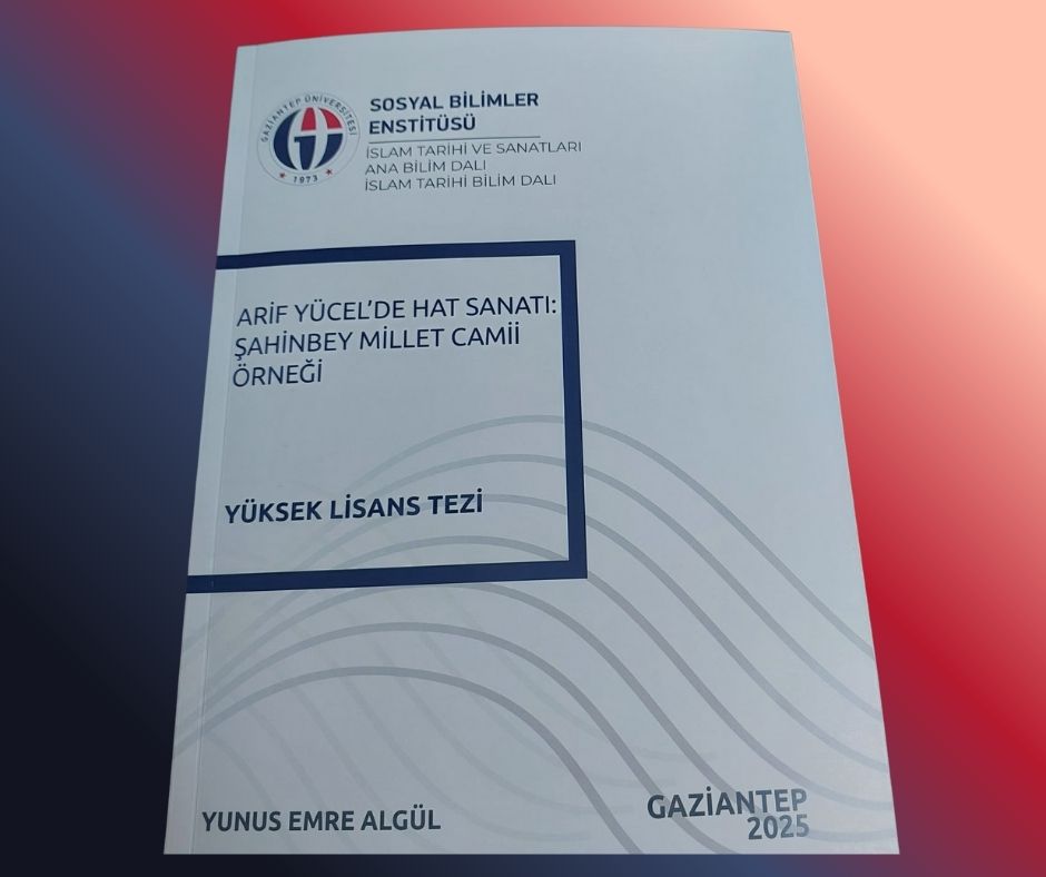 Başta Şahinbey Millet Camii hat çalışmaları olmak üzere birçok esere imza atan hocamızın bu eseri örneğinde hat sanatına dair birikimi Gaziantep Üniversitesi Sosyal Bilimler Enstitüsü İslam Tarihi ve Sanatları Ana Bilim Dalında Yunus Emre Algül tarafından yüksek lisans tezi olarak çalışıldı. Fakülte olarak hocamızı tebrik eder, başarılarının devamını dileriz.